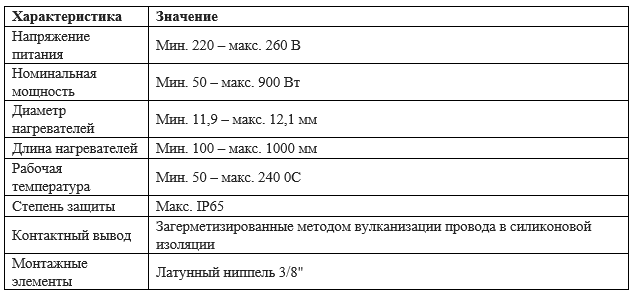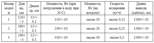 Таблица стандартных продуктов (патронные саморегулирующиеся нагреватели)
